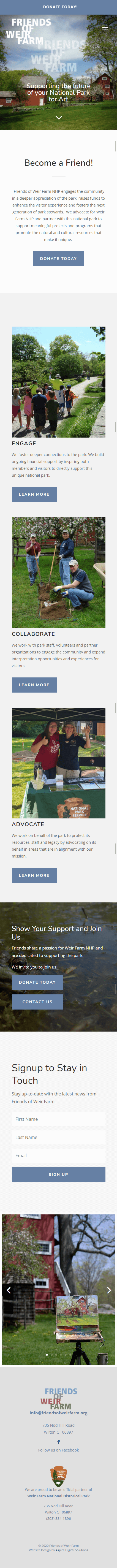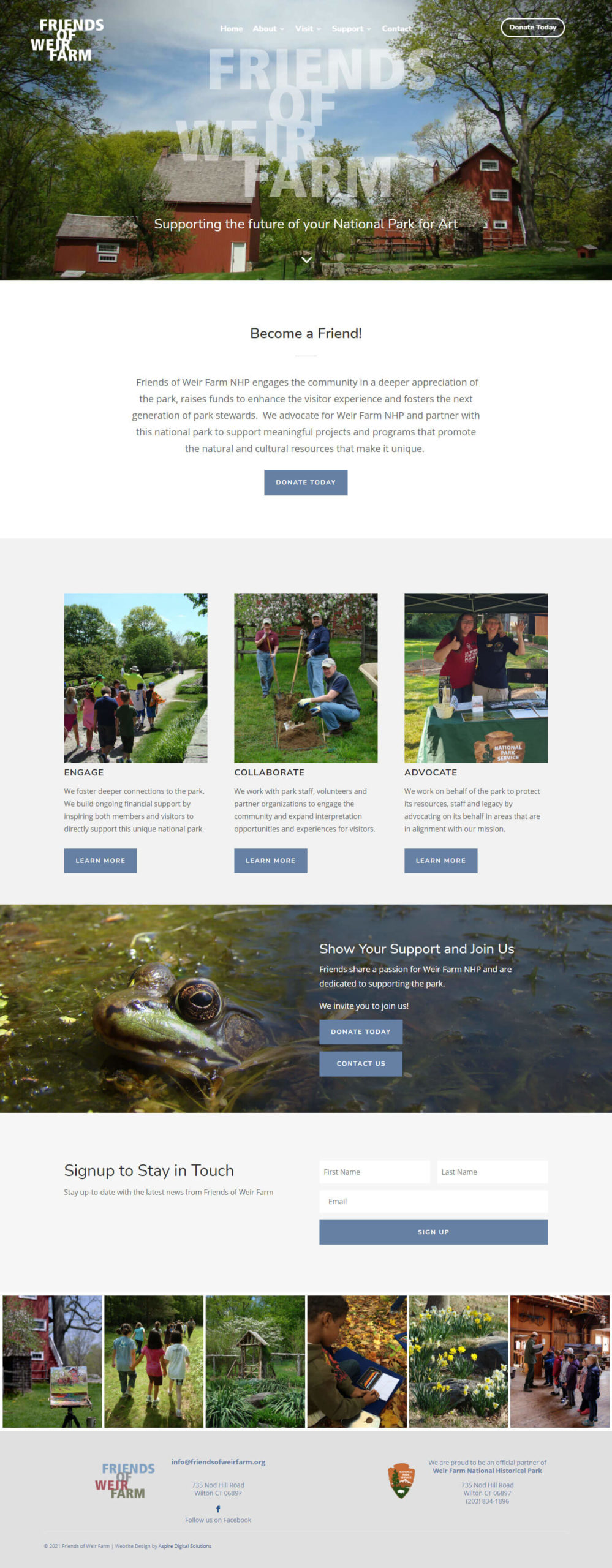 Website redesign for Wilton non-profit organization with conversational online donation form functionality.
