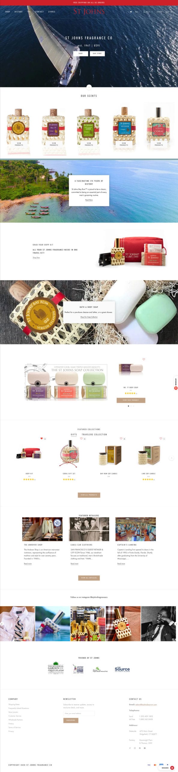 Since commencing this collaboration in winter of 2019, our office has been invigorated by subtle island tones and trending scents. St Johns Fragrance Co came to Aspire to help take this lively brand with a rich history, and make their Shopify website reflect that.