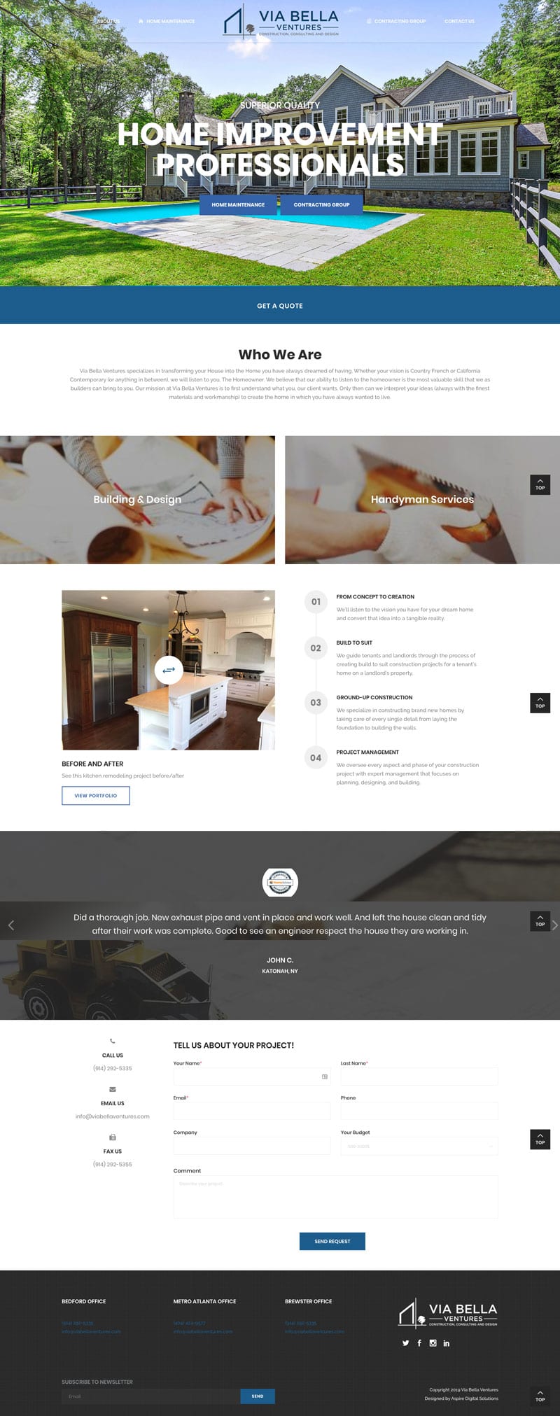As a construction firm with a sister brand covering all aspects of handyman services, Via Bella Ventures needed a website architecture that could unify their brands under one umbrella. This project included full service branding, logo design, and a 3-tier website redesign.