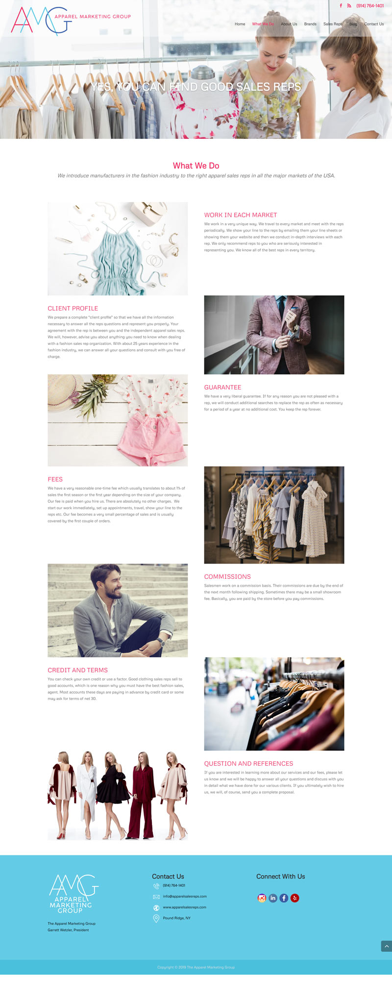 The Apparel Marketing Group contacted Aspire Digital Solutions to redesign their logo and outdated website. A very healthy and growing company, they needed a website that showed they were ready for business.