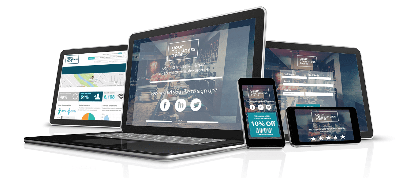 Give your loyal customers rewards when they log on to your Free Wi-Fi and keep them coming back with promotions, coupons, contests and special offers – it’s like a digital punchcard.